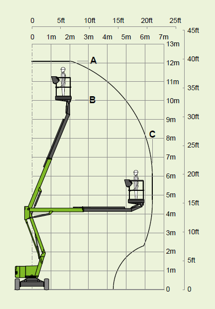 Unsere Gelenkteleskopbühne mit einer Arbeitshöhe von 12,1 Metern und einer Reichweite von 6,40 Metern bietet maximale Flexibilität für Arbeiten an schwer zugänglichen Stellen. Mit einem elektrischen Antrieb arbeitet sie leise und emissionsfrei, was sie zur idealen Wahl für Einsätze im Innenbereich sowie in sensiblen Umgebungen macht.